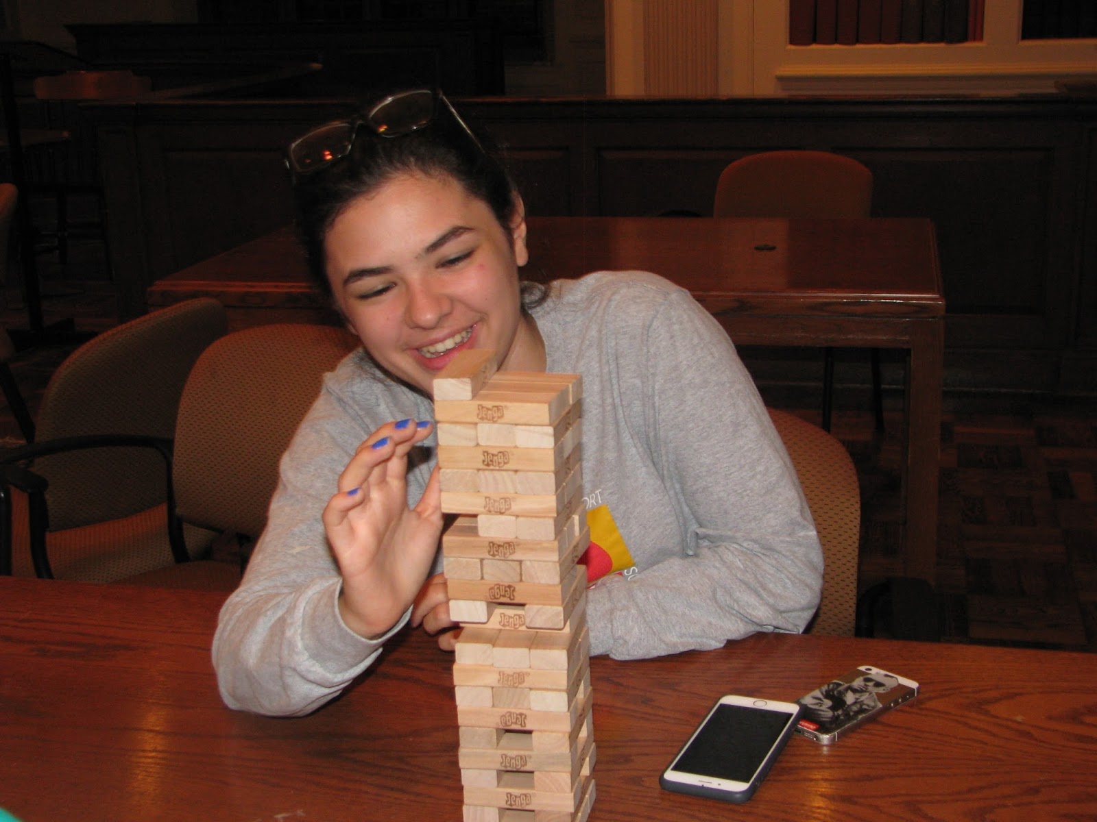 What do you do on a night when torrential rain, high winds, and hail are predicted in DC? Game night! While part of the group watched the movie "Charlie Wilson's War," the rest of SPS '15 tested their wits in games of Catchphrase and their nerves in some high stakes Jenga.